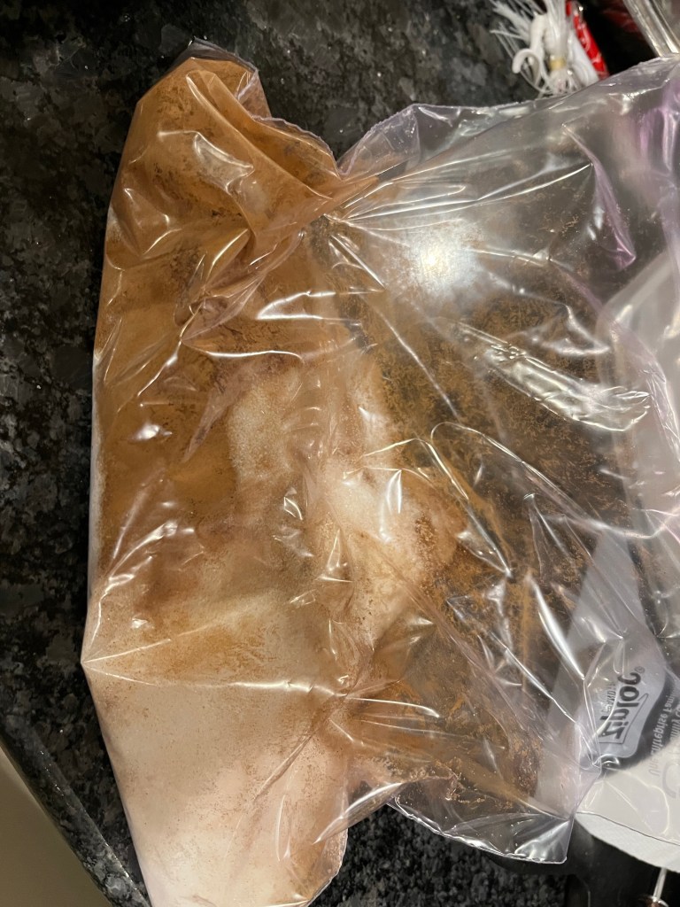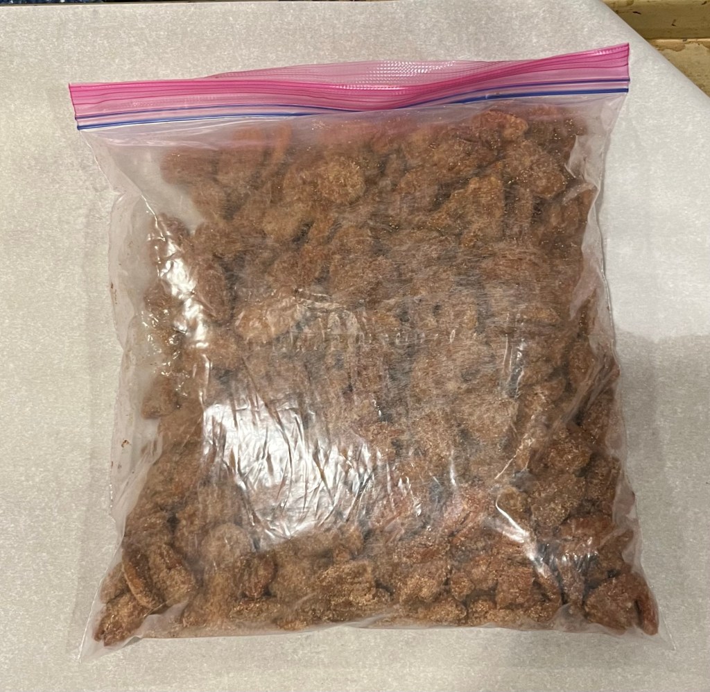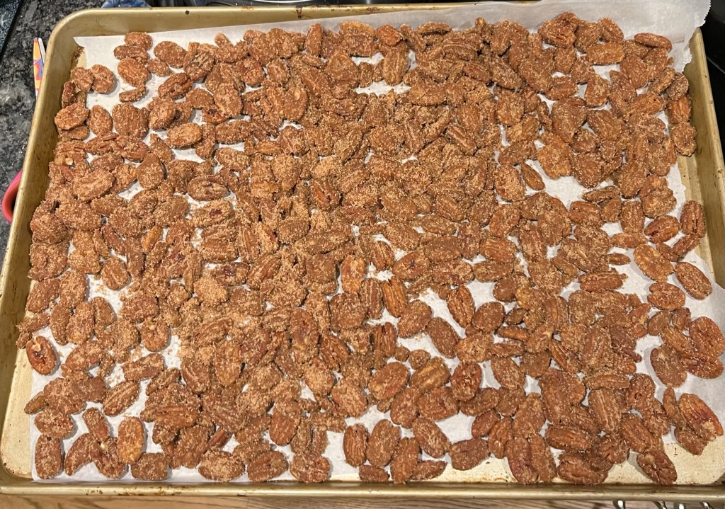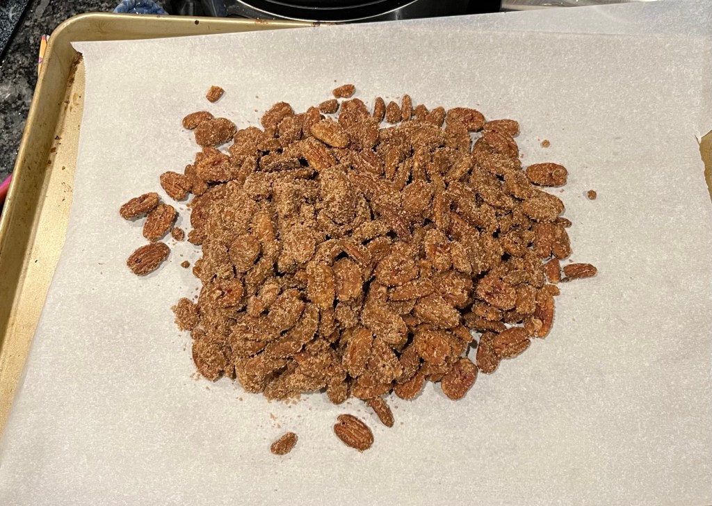 Coated pecans mixed with cinnamon mix (shake them up really well)